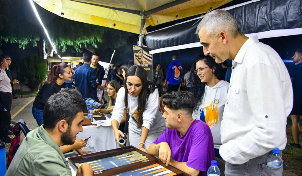 DAÜ Öğrenci İşlerinden Sorumlu Rektör Yardımcısı Prof. Dr. Hüseyin Aktuğlu ve Sosyal ve Kültürel İşlerden Sorumlu Rektör Yardımcısı Prof. Dr. Deniz İşçioğlu stantları gezerek öğrencilerle bir araya geldi. Prof. Dr. Aktuğlu ve Prof. Dr. İşçioğlu, gecede yaptıkları konuşmada yeni öğrencilere ‘Hoş Geldiniz’ diyerek başarılı bir akademik yıl geçirmelerini temenni etti.