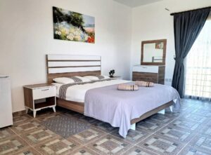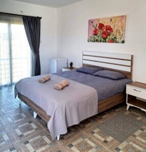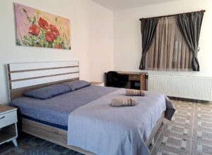 – Misafirlerimizin konaklaması için 3 odamız var. Her odaya paylaşılan geniş ve ferah bir balkondan erişilebilir. Verilen fotoğraflar balkondan girildiğini gösteriyor. Odalar 1. kattadır ve -merdivenlerle ulaşılabilir.