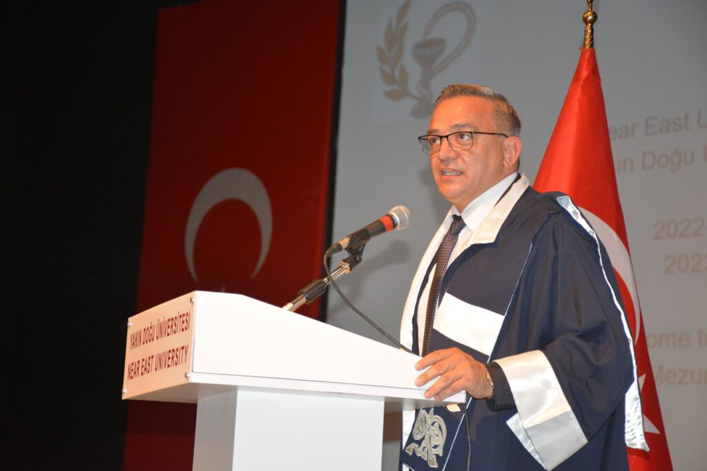 Konuşmasında, eczacılık mesleğinin sağlık sisteminin önemli bir parçası olduğunu dile getiren Yakın Doğu Üniversitesi Rektör Yardımcısı Doç. Dr. Murat Tüzünkan, “Sizler için yeni bir başlangıcın kapıları açılıyor. Üniversite hayatınız boyunca elde ettiğiniz bilgi ve deneyimleri artık gerçek dünyada uygulama zamanı geldi. Eczacılık mesleği, sağlık hizmetlerinin sürdürülebilirliği için kritik bir rol oynar. Bu nedenle, toplumun sağlık bilincini artırmak, doğru ilaç kullanımı konusunda farkındalık yaratmak ve halk sağlığını korumak için çaba sarf etmeniz büyük bir önem taşır” dedi