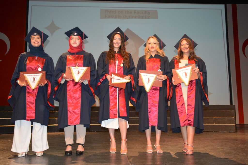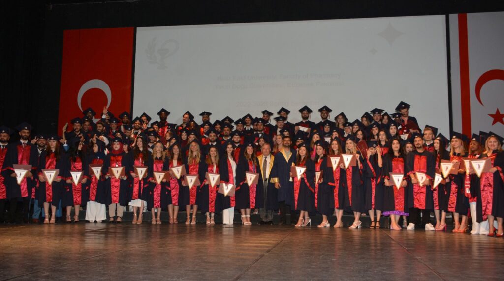 Yakın Doğu Üniversitesi Eczacılık Fakültesi’den, 2022-2023 eğitim yılı bahar döneminde mezun olan 150 öğrenci, Yakın Doğu Üniversitesi Atatürk Kültür ve Kongre Merkezi’nde gerçekleştirilen törenle diplomalarını aldı.
