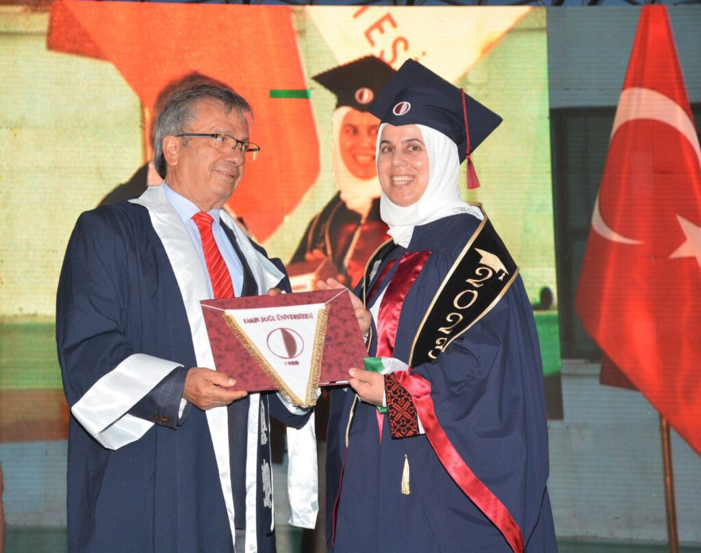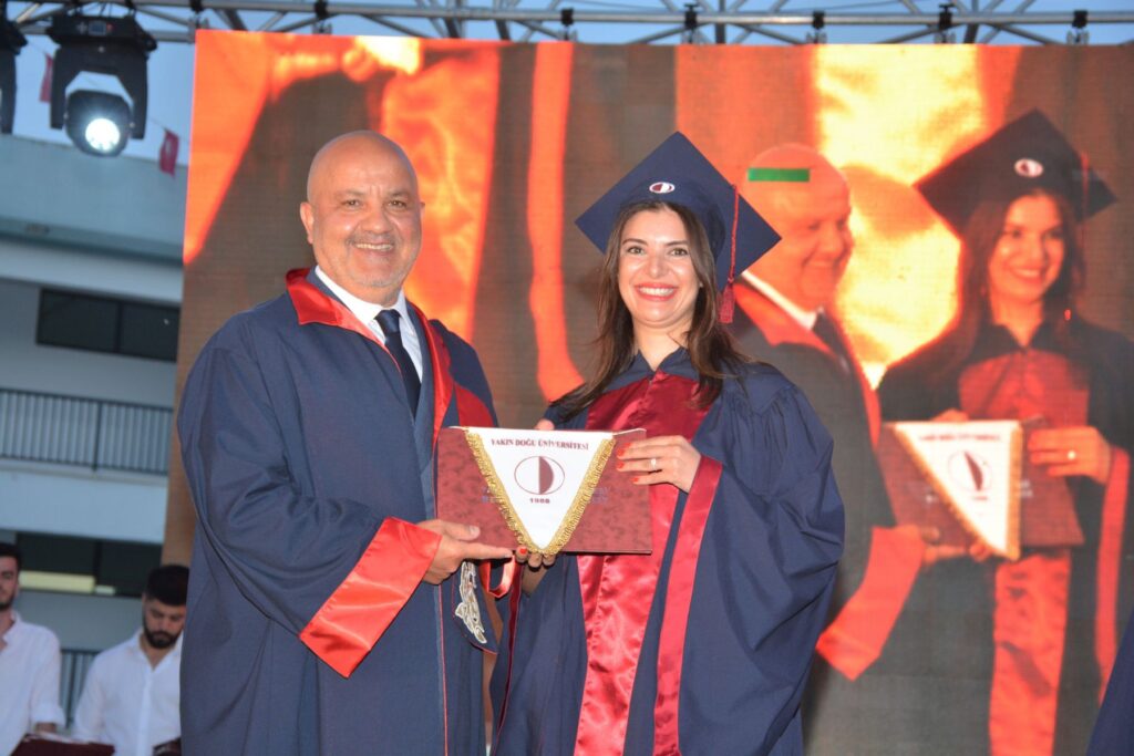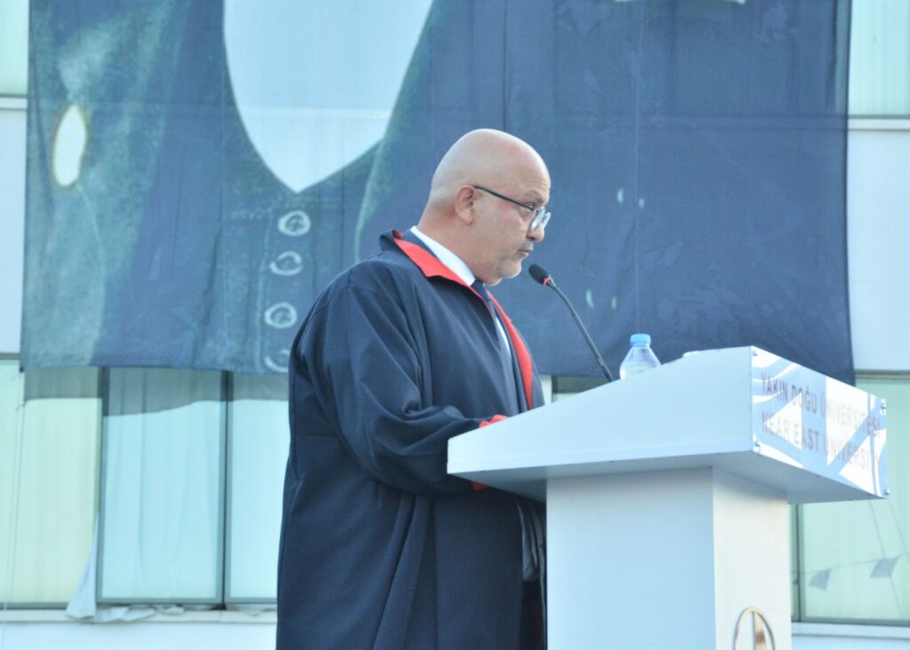 Prof. Dr. Tamer Şanlıdağ, “Dünyanın neresinde olursanız olun, artık Yakın Doğu Üniversitesi’nin ayrılmaz birer parçasısınız. Unutmayın ki, dünyanın en saygın ve en iyi üniversitelerinden birinden mezun oldunuz” ifadelerini kullanarak Yakın Doğu Üniversitesi’nin elde ettiği uluslararası başarılara değindi.