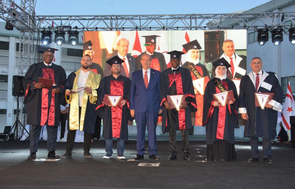 Yakın Doğu Üniversitesi Lisansüstü Eğitim Enstitüsü’nün yüksek lisans ve doktora mezunları Cumhurbaşkanı Ersin Tatar’ın katılımı ile gerçekleştirilen törenle diplomalarını aldı. Törende 364’ü yüksek lisans ve 55’i doktora olmak üzere toplam 419 mezun büyük bir coşkuyla keplerini attı.